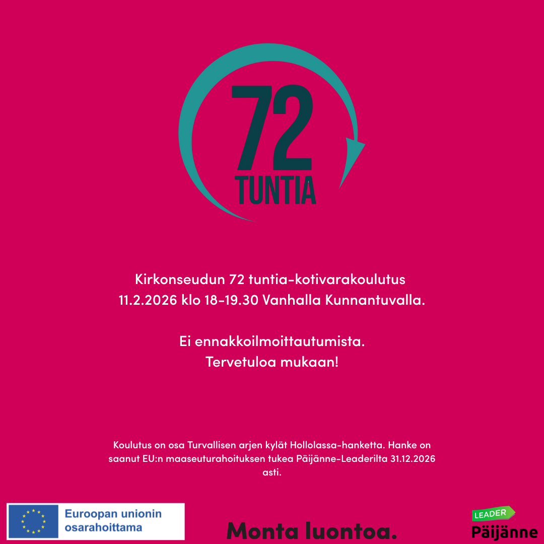 Hollolan Kirkonseudun Kylät ry järjestää yhdessä Turvallisen arjen kylät Hollolassa -hankkeen kanssa 72 tuntia -kotivarakoulutuksen, jossa käydään läpi käytännönläheisesti kotivaraan, arjen varautumiseen ja kriisitilanteisiin valmistautumiseen liittyviä asioita.